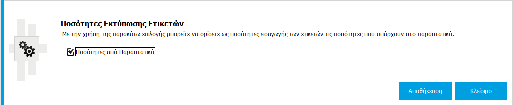 Πατώντας το κουμπί μπορείτε να ορίσετε ως ποσότητες εισαγωγής των ετικετών τις ποσότητες που υπάρχουν στο παραστατικό.