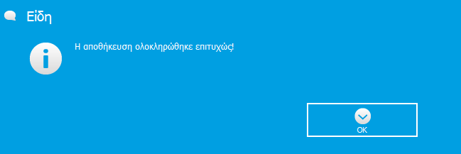 Τέλος, αφού συμπληρώσετε όλα τα απαραίτητα στοιχεία για τη δημιουργία του είδους, πατάτε Αποθήκευση και εμφανίζεται το παρακάτω μήνυμα.