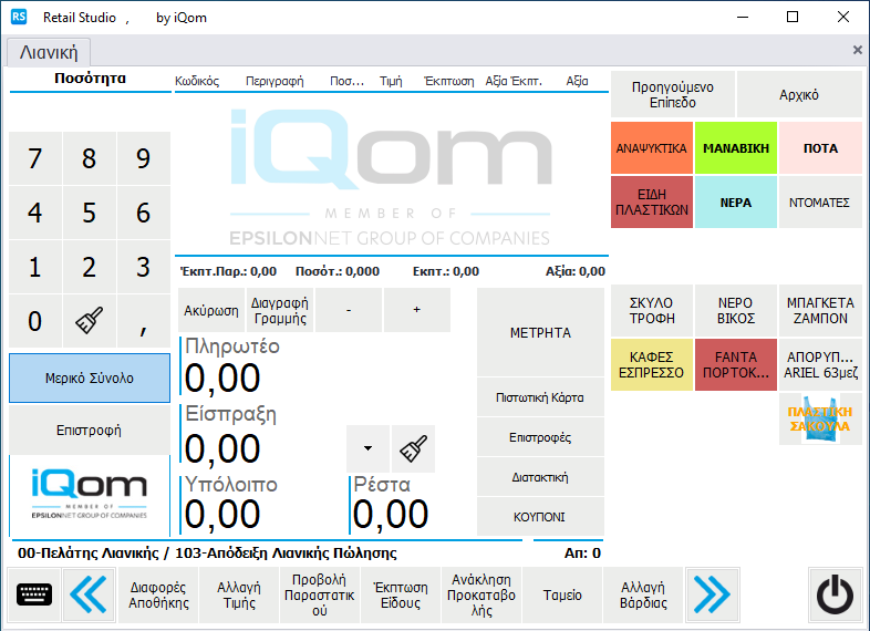 Πατώντας το κουμπί Μερικό Σύνολο που βρίσκεται κάτω από το πεδίο Ποσότητα εμφανίζονται τα Κουμπιά Γρήγορης Εισαγωγής Μετρητών. Η περιοχή των κουμπιών  αντιστοιχεί στο ποσό που θα λάβει ο χρήστης από τον πελάτη ως πληρωμή για τα είδη που πρόκειται να αγοράσει.