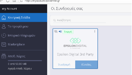 Συνδεόμαστε στον πάροχο, επιλέγουμε «Είσοδος» στην συνδρομή «Epsilon Digital 3rd Party»