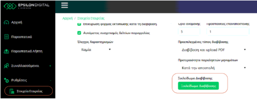 Από τη στιγμή λοιπόν που βλέπουμε να είναι ορισμένο σε ένα παραστατικό το κλείδωμα παρόχου, μπαίνουμε στον πάροχο (Epsilon Digital) και ελέγχουμε εάν έχει κλειδωθεί η διαδικασία διαβίβασης παραστατικών.