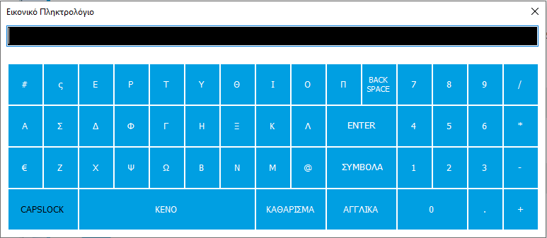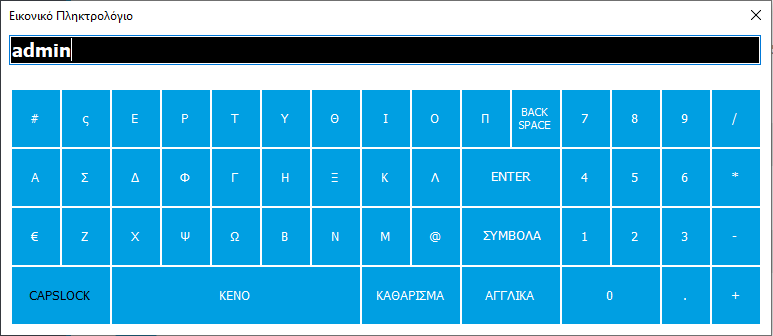 Πατώντας το κουμπί  εμφανίζεται το iKeyboard, μια οθόνη η οποία λειτουργεί σαν εικονικό πληκτρολόγιο με όλα τα βασικά πλήκτρα. Με αυτή τη λειτουργία ο χρήστης έχει τη δυνατότητα να εισάγει τα στοιχεία του χωρίς να χρησιμοποιεί πραγματικό πληκτρολόγιο. Μπορεί να επιλέξει κάθε πλήκτρο κάνοντας ένα κλικ πάνω σε αυτό. Όταν πατηθεί το iKeyboard του πεδίου «Χρήστης», οι χαρακτήρες εμφανίζονται κανονικά.
