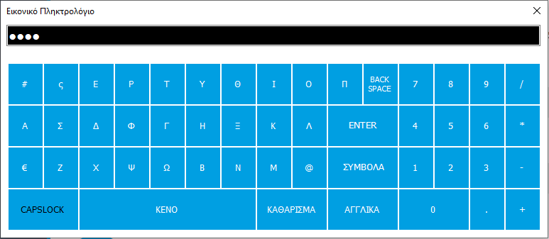 Από την άλλη όταν πατηθεί το iKeyboard του πεδίου «Κωδικός», οι χαρακτήρες εμφανίζονται κρυπτογραφημένοι.
