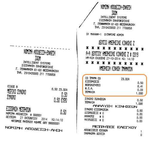 Σύνολο Απόδειξης: Αξία 0,50 | ΦΠΑ 0,09 | Κ.Αξία 0,41