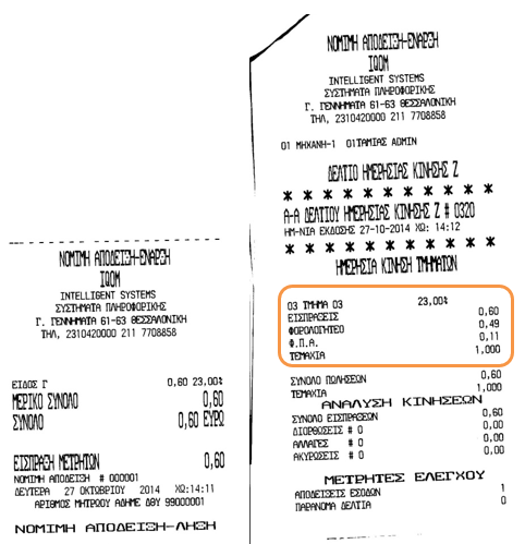 Σύνολο Απόδειξης: Αξία 0,60 | ΦΠΑ 0,11 | Κ.Αξία 0,49