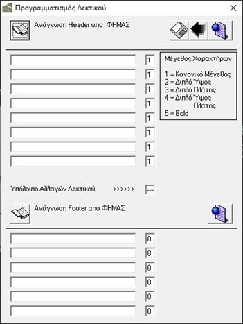 Η προσθήκη λεκτικού στον Algobox III γίνεται από τη διαδρομή Προγραμματισμός \ Διαχείριση ΦΗΜΑΣ \ Λεκτικό ΦΗΜΑΣ. Με το κουμπί  γίνεται η ανάγνωση Header \ Footer από ΦΗΜΑΣ, με το κουμπί  γίνεται η αποθήκευση αλλαγών λογότυπου, με το κουμπί  κλείνει το παράθυρο και με το κουμπί  γίνεται η αποθήκευση αλλαγών στον ΦΗΜΑΣ.