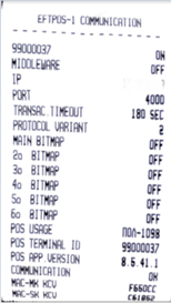 Ο έλεγχος επικοινωνίας Algobox III με το EFT POS γίνεται πάνω από τον Algobox III από τη διαδρομή Κλειδί \ Προγραμματισμός \ EFTPOS \ Αριθμός Τερματικού \ Έλεγχος Επικοινωνίας. Εφόσον η επικοινωνία είναι επιτυχής εκτυπώνεται από τον Algobox III αντίστοιχο χαρτί όπως φαίνεται παρακάτω: