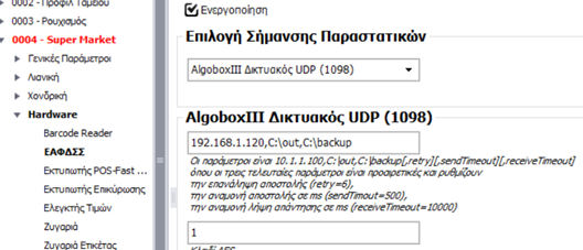 Για να μπορέσει να επικοινωνήσει ο Algobox III με το RetailStudio θα πρέπει στον Algobox III το Net Protocol να έχει οριστεί UDP.