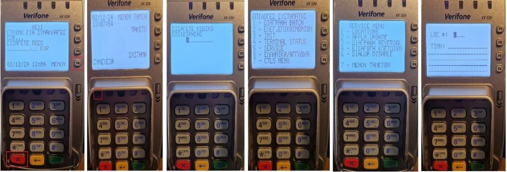 F4 \ Συνέχεια \Σύστημα -F4 \ 2 (πατάτε enter)  \ 5 – service  \ 2 (πατάτε enter)\ 1 – locations \ LOC  = 91 (πατάτε enter)
