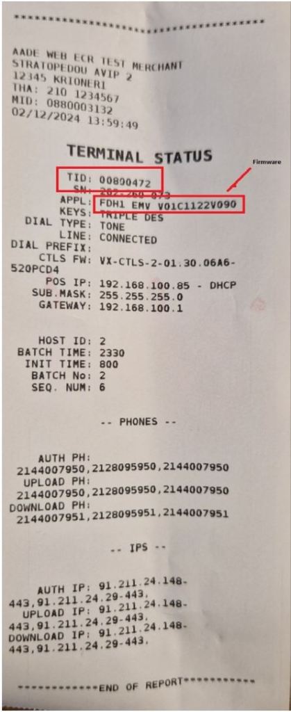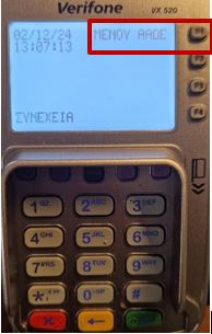 F4 \ Συνέχεια \ Σύστημα -F4 \ Κωδικός Επιχείρησης -> 2 (πατάτε πράσινο)\4-Terminal Status