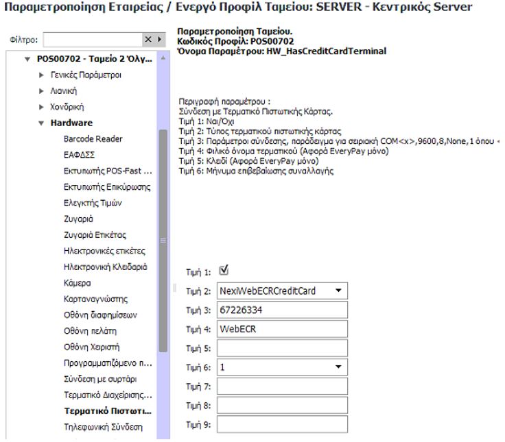 • Στις επιλογές εγκατάστασης στην παράμετρο Τερματικό Πιστωτικής Κάρτας κάνετε την παρακάτω παραμετροποίηση
