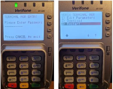 Η επανεκκίνηση του τερματικού κάρτας γίνεται αν πατήσετε το πλήκτρο 7 με το πράσινο κουμπί μαζί παρατεταμένα, πληκτρολογείτε τον κωδικό 12345 και επιλέγετε το πλήκτρο 3 – restart.