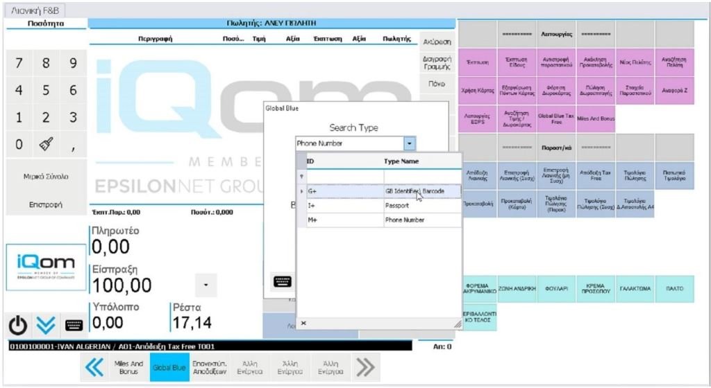 Άνοιγμα πελάτη για έκδοση Global Blue Tax Free