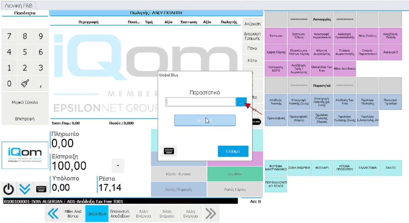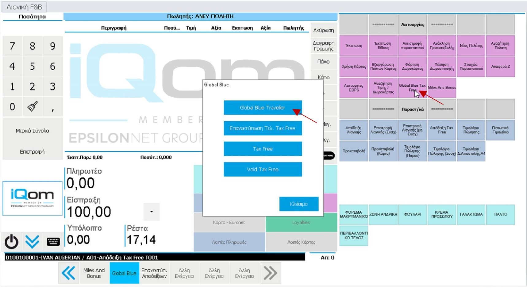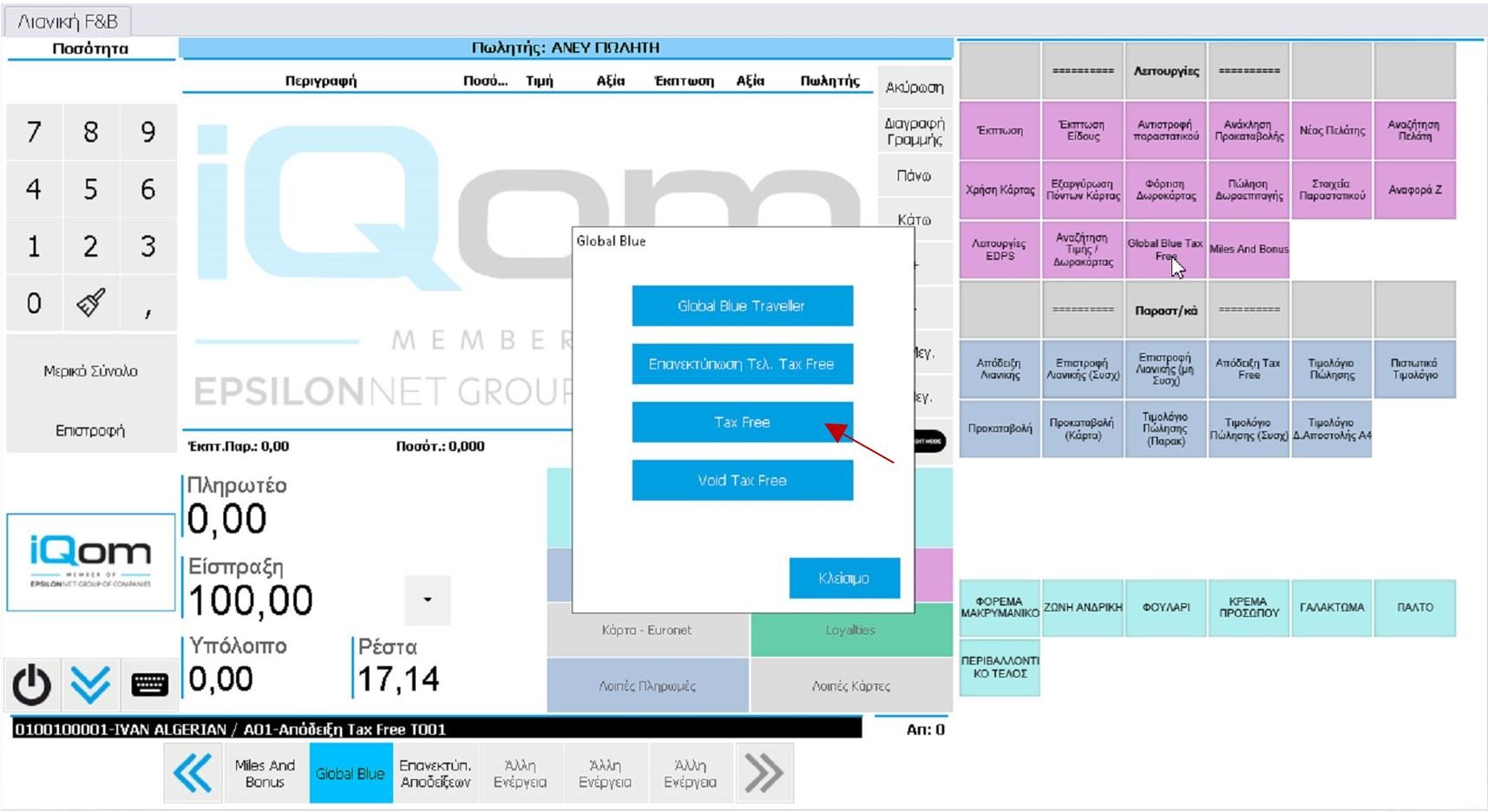 - Πατάτε το κουμπί Global Blue Tax Free και την επιλογή Tax Free.