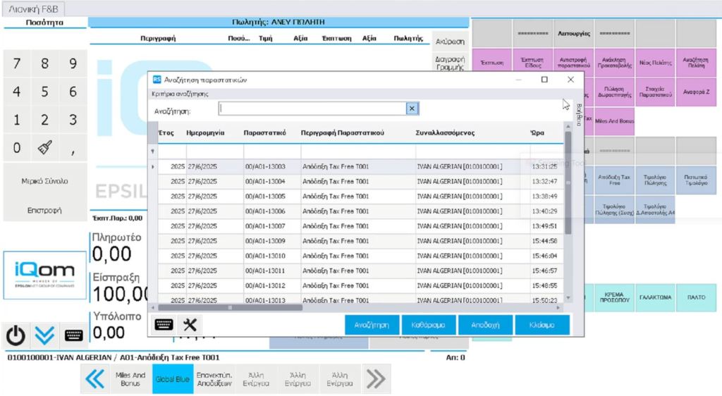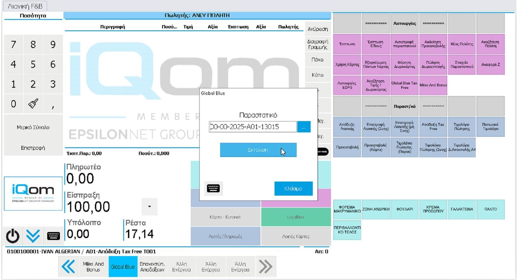 Επανεκτύπωση τελευταίου παραστατικού Global Blue Tax Free