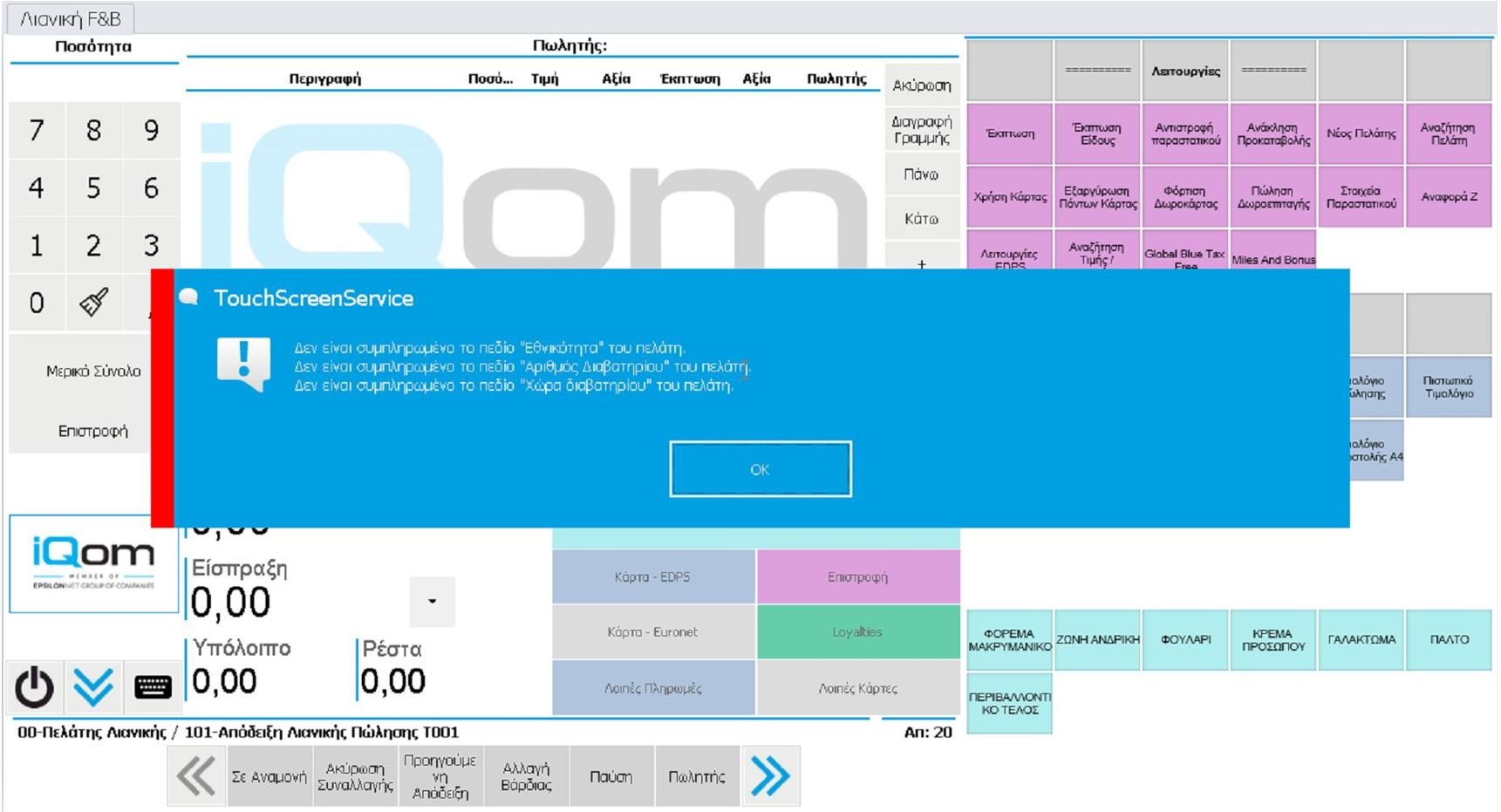 - Σε περίπτωση που επιλεχθεί πελάτης χωρίς διαβατήριο εμφανίζεται αντίστοιχο μήνυμα όπως φαίνεται παρακάτω.