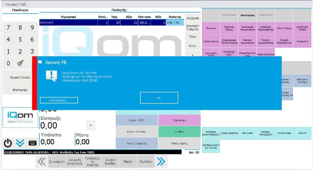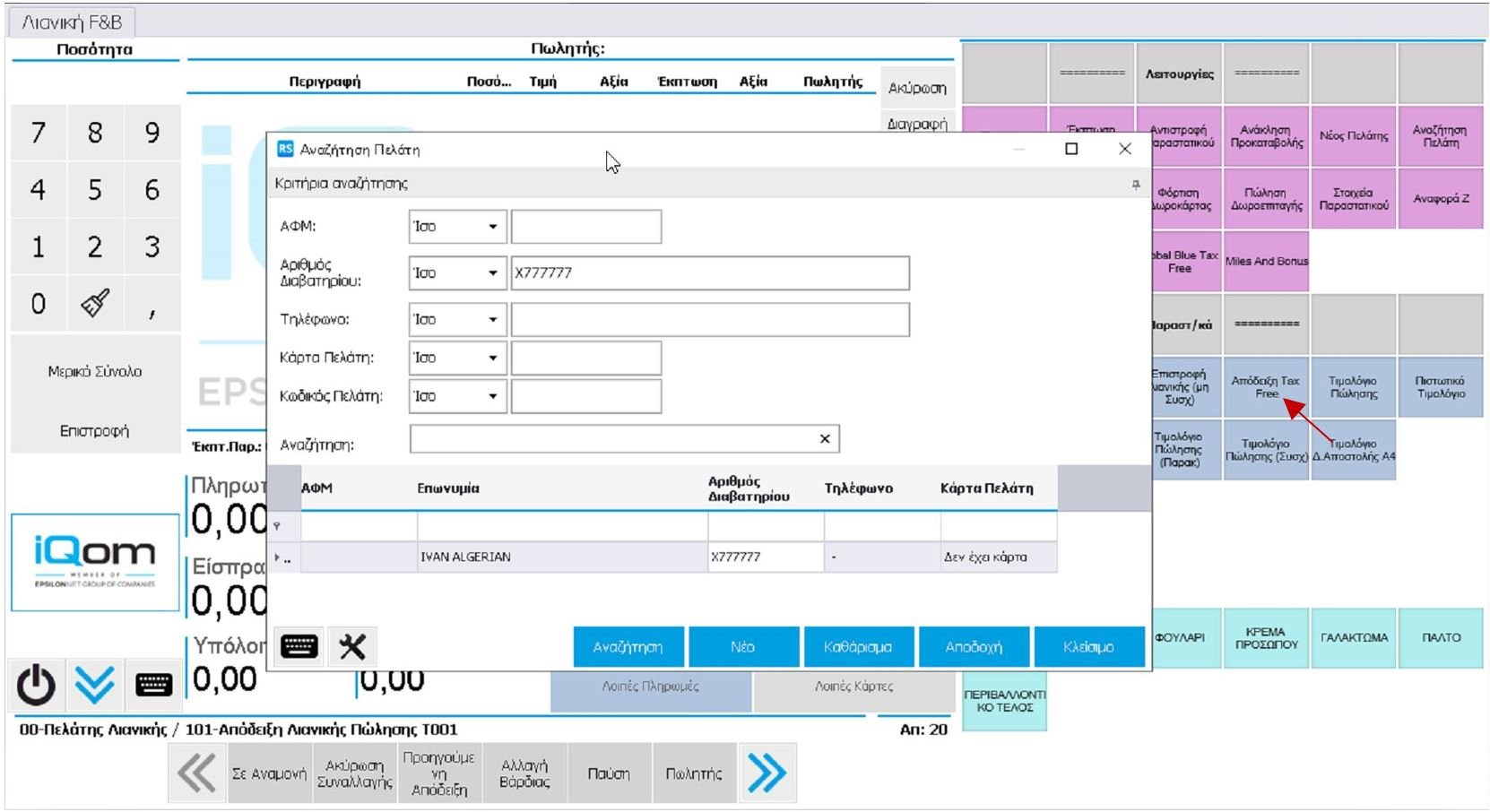 Κατά την έκδοση παραστατικού GlobalBlue Tax Free εμφανίζεται μήνυμα για επιλογή πελάτη.