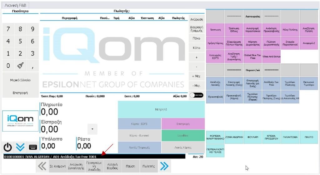 Στην οθόνη λιανικής θα πρέπει να εμφανιστεί το αντίστοιχο κουμπί για την έκδοση παραστατικού GlobalBlue TaxFree. Το κουμπί ενεργοποιείται από τις Επιλογές Εγκατάστασης από την παράμετρο Global Blue (RibbonButton_TaxFreeGlobalBlue).