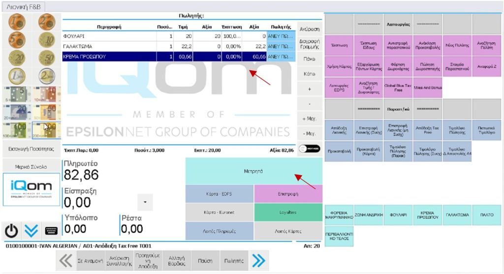 Χτυπάτε τα είδη στην οθόνη λιανικής και πατάτε τον τρόπο πληρωμής που επιθυμείτε.