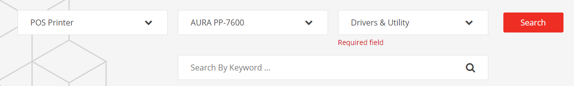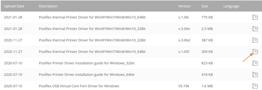 Μπαίνετε στο link https://www.posiflex.com/en-global/Download/index/driver/POS-Printer/ . Επιλέγετε το μοντέλο του εκτυπωτή, για παράδειγμα AURA PP-7600, πατάτε Search και εμφανίζονται από κάτω οι εκδόσεις των drivers.