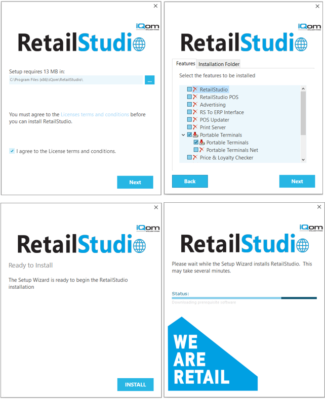 Επιπλέον, για να αναγνωρίσουν τα Windows το φορητό τερματικό θα πρέπει να τρέξει στη θέση εργασίας που συνδέεται το φορητό τερματικό το πακέτο εγκατάστασης MS+SQL+CE+3.5 που βρίσκεται στο φάκελο Prereqs (C:\Program Files (x86)\iQom\RetailStudio\PortableTerminals\Prereqs).