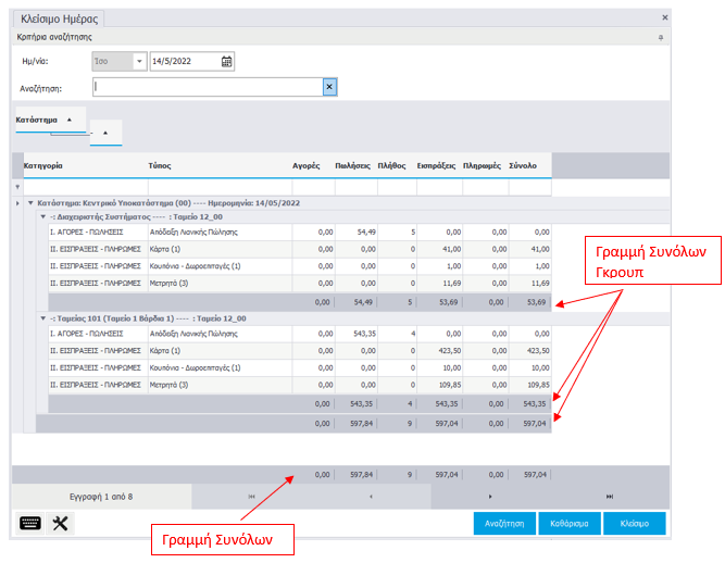 Εμφάνιση\Απόκρυψη Γραμμής Συνόλων Γκρουπ και Εμφάνιση\Απόκρυψη Γραμμής Συνόλων: Αφορούν τις αναφορές που έχουν σύνολα όπως φαίνεται στην παρκάτω εικόνα.