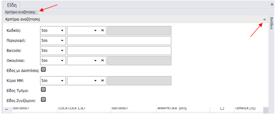 Για να εμφανιστούν ξανά τα Κριτήρια αναζήτησης επιλέγετε τα κριτήρια αναζήτησης και ξανά το κουμπί καρφιτσώματος ώστε να δείχνει προς τα κάτω.