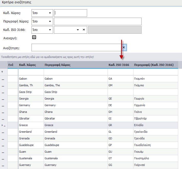 6. Θα πρέπει να οριστούν οι Κωδικοί ISO 3166 της ΑΑΔΕ για τις Χώρες (Πωλήσεις\ Διαχείριση\ Χώρες). Στον πίνακα αυτό είναι ήδη καταχωρημένες οι Χώρες με τους σχετικούς κωδικούς ISO.