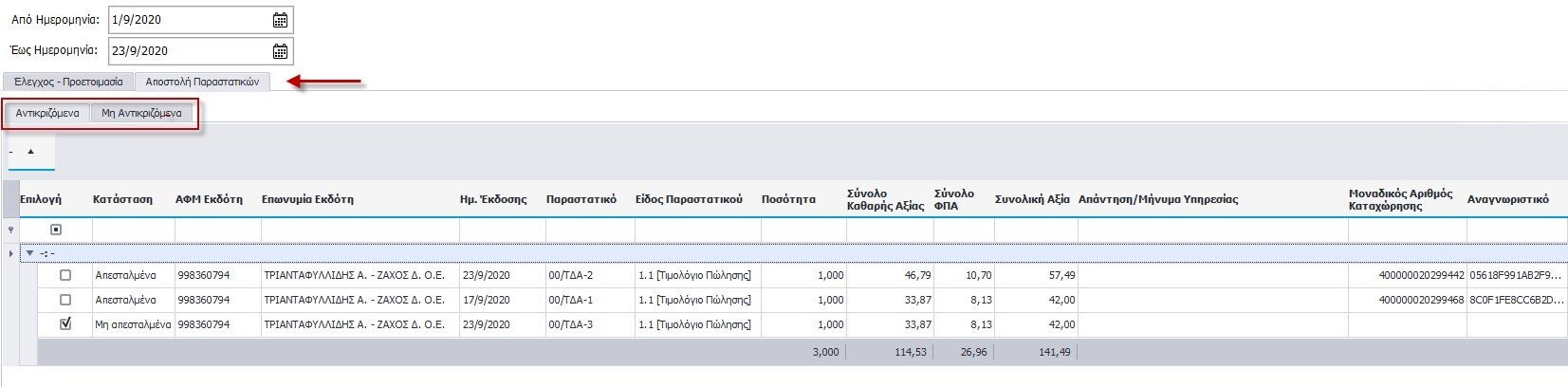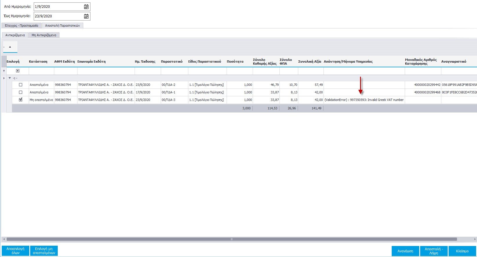 Για τα παραστατικά τα οποία έχουν σφάλματα δεν γίνεται προσπάθεια αποστολής τους, μέχρι τα σφάλματα αυτά να διορθωθούν.