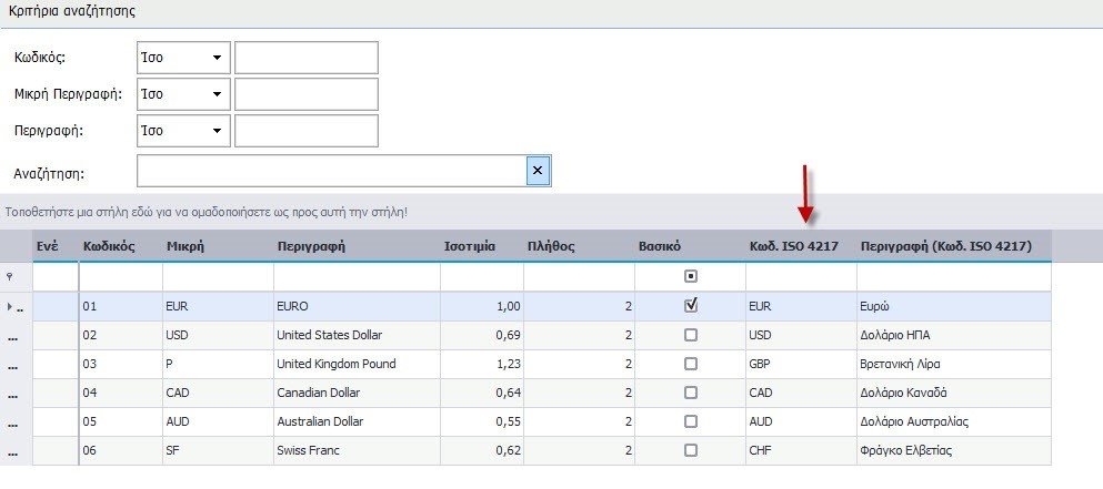 3. Θα πρέπει να ελεγχθεί η Παραμετροποίηση Ισοτιμιών (Πωλήσεις\ Διαχείριση\ Ισοτιμίες) για τον Κωδ. ISO 4217. Για τις προεγκατεστημένες ισοτιμίες του RetailStudio, όπως του Ευρώ, υπάρχει προσυμπληρωμένος ο σχετικός Κωδικός ISO.
