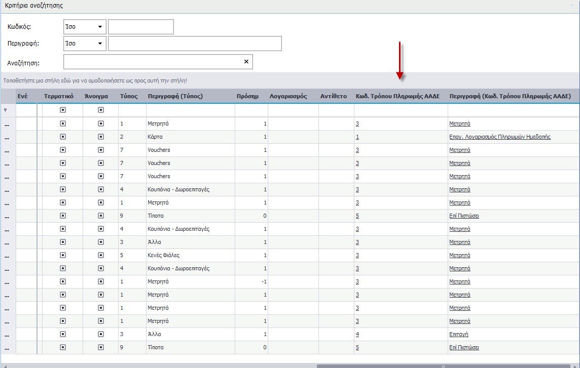8. Θα πρέπει να συμπληρωθεί στους Τρόπους Πληρωμής (Πωλήσεις\ Διαχείριση\ Τρόποι Πληρωμής) ο Κωδ. Τρόπου Πληρωμής ΑΑΔΕ.