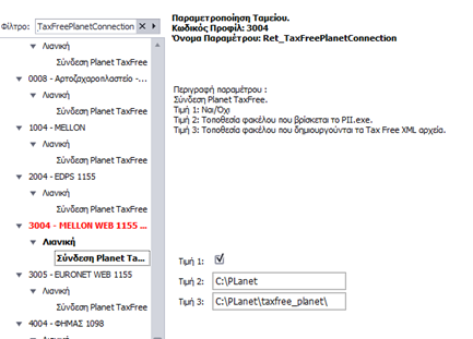 • Τιμή 3: Τοποθεσία φακέλου που δημιουργούνται τα Tax Free XML αρχεία.