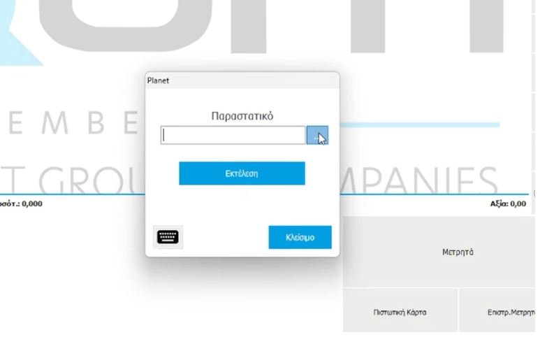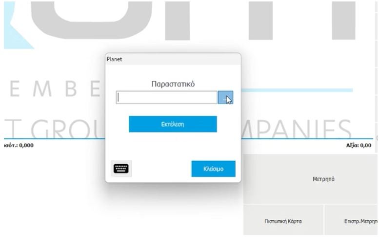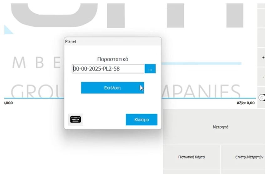 Σε περίπτωση που το παραστατικό έχει πάρει επιτυχώς σήμανση από τον πάροχο, αλλά για κάποιο λόγο δεν «σηκώθηκε» η εφαρμογή της Planet τότε η αποστολή του παραστατικού στην υπηρεσία μπορεί να γίνει με τον εξής τρόπο από την οθόνη λιανικής: