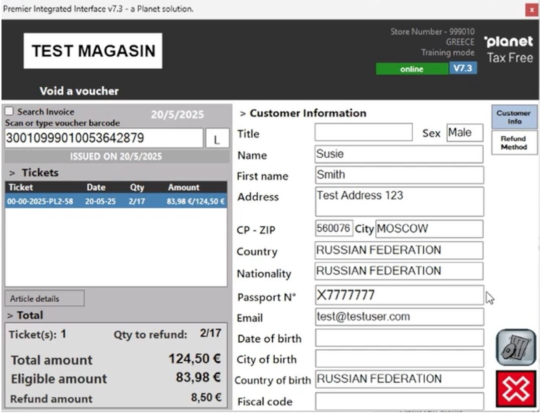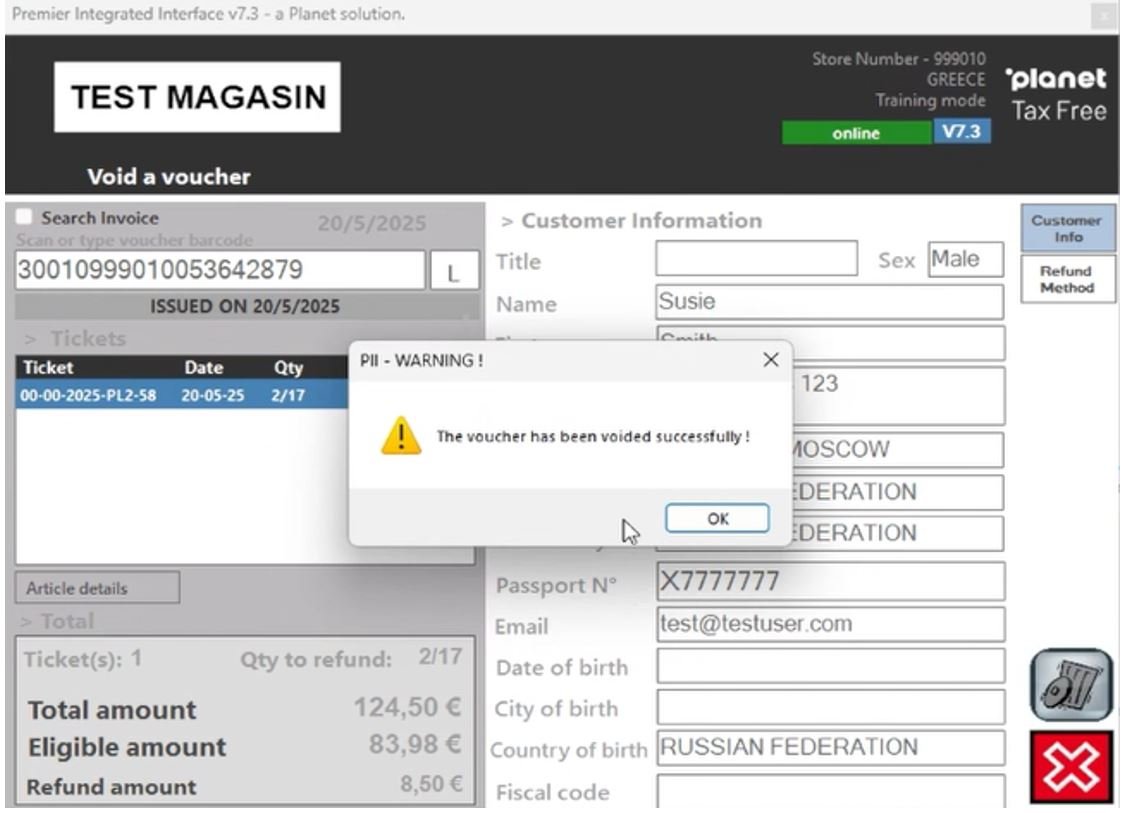 Με το κουμπί Planet και την επιλογή Void a Tax Free Voucher γίνεται η ακύρωση του παραστατικού.