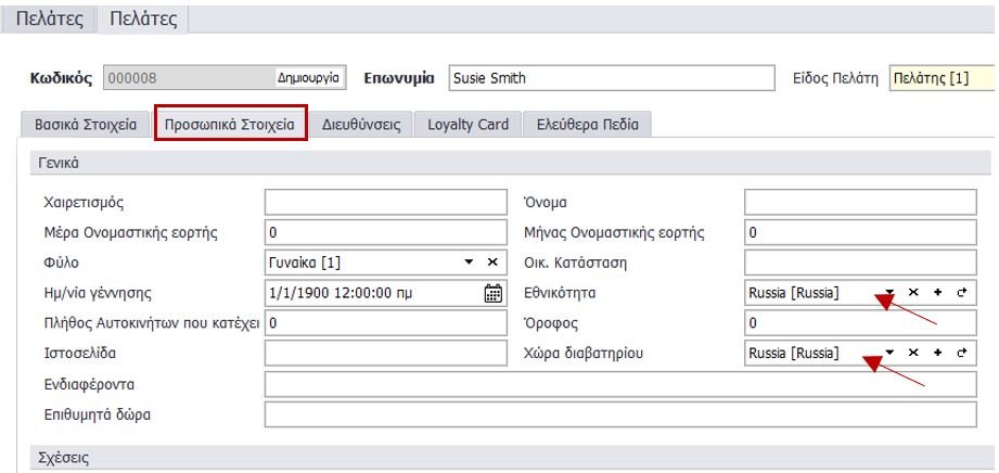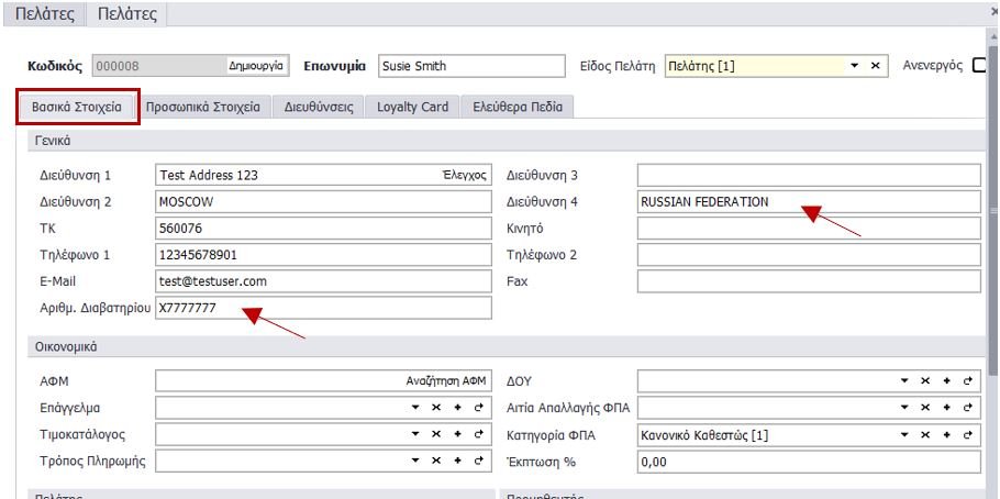 Ο πελάτης θα πρέπει να έχει συμπληρωμένα τα εξής πεδία: