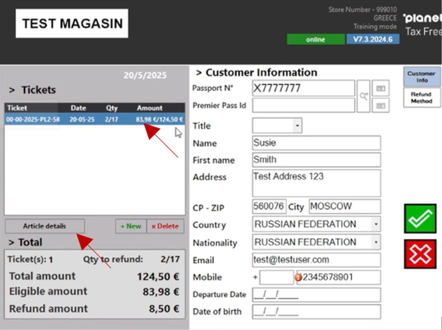 Με το κουμπί Article details φαίνεται αναλυτικά το ποσό για επιστροφή.
