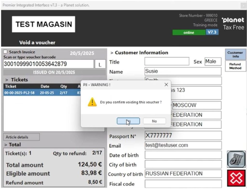 Με το κουμπί Planet και την επιλογή Void a Tax Free Voucher γίνεται η ακύρωση του παραστατικού.