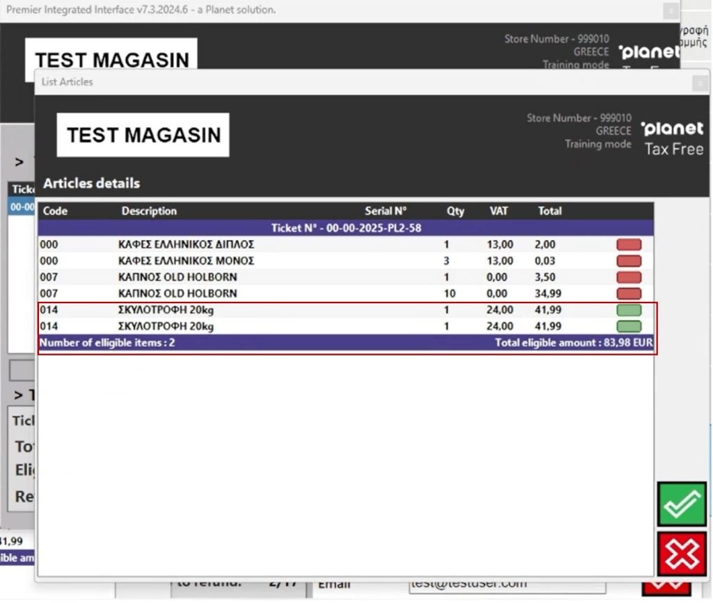 Εφόσον η επικοινωνία με τον πάροχο είναι επιτυχής «σηκώνεται» η εφαρμογή της Planet και εκδίδεται το παραστατικό της υπηρεσίας. Σε περίπτωση μη επικοινωνίας εμφανίζεται αντίστοιχο μήνυμα αποτυχίας επικοινωνίας με τον πάροχο. Στο παράδειγμά μας στο PII φαίνεται ότι τα 83,98 € είναι για επιστροφή.