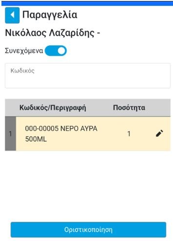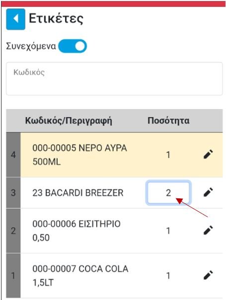 Για την αλλαγή ποσότητας σε κάποιο είδος επιλέγετε το εικονίδιο και αλλάζετε την ποσότητα.