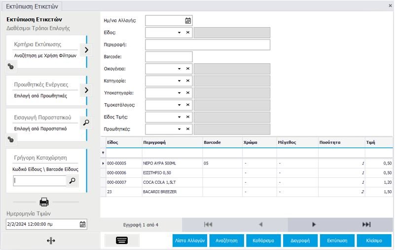 Τα είδη που σκαναρίστηκαν είναι διαθέσιμα στην Εκτύπωση Ετικετών.