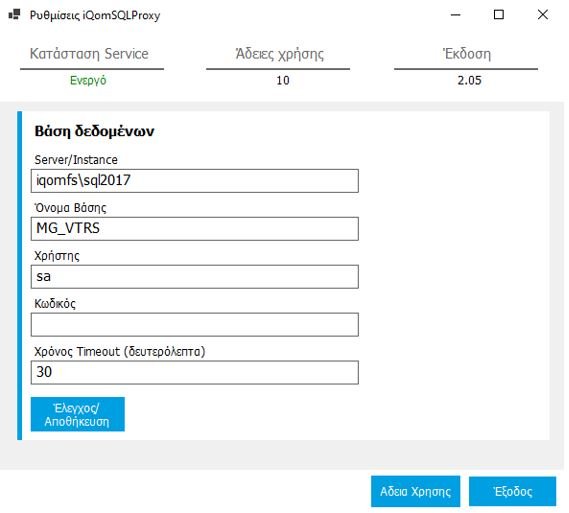 Από το κουμπί «Ρυθμίσεις» ή κάνοντας διπλό κλικ στο iQomSQLProxy.exe εμφανίζεται η οθόνη ρυθμίσεων.