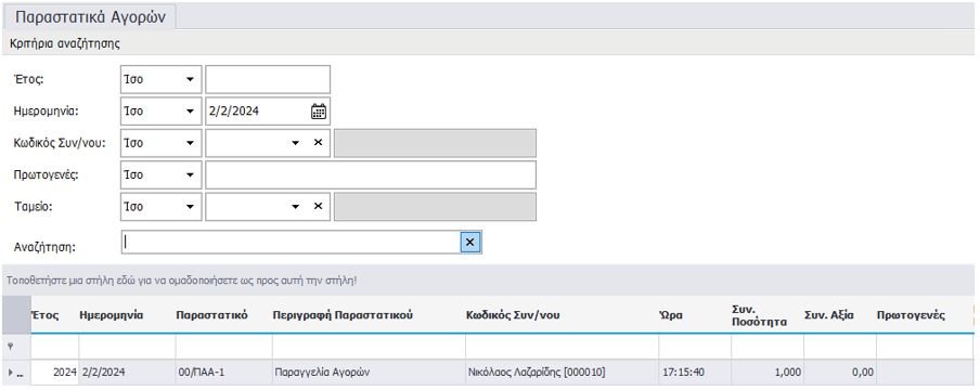 Το παραστατικό είναι διαθέσιμο στο Αγορές \ Καθημερινά \ Παραστατικά Αγορών.