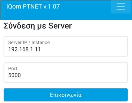 - Server IP/ Instance: Συμπληρώνετε την IP της θέσης εργασίας που τρέχει η υπηρεσία iQomSQLProxy.