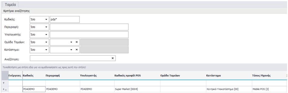 Προσοχή: Θα πρέπει να υπάρχει ταμείο (Ταμείο \ Διαχείριση \ Ταμεία) για τη φορητή συσκευή στη βάση δεδομένων.