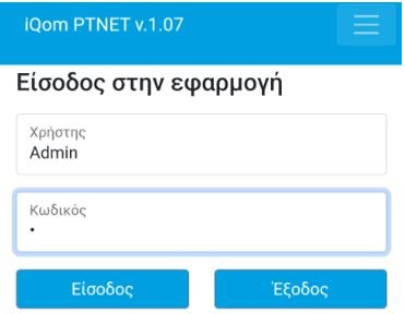 Η είσοδος στην εφαρμογή iQomPTNET γίνεται με τον χρήστη και τον κωδικό που χρησιμοποιείτε και στο RetailStudio.