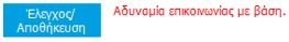 Αφού συμπληρωθούν τα πεδία, με το κουμπί «Έλεγχος/Αποθήκευση» γίνεται έλεγχος σύνδεσης με τη βάση και αποθήκευση των στοιχείων. Εφόσον η σύνδεση με τη βάση δεδομένων είναι επιτυχής εμφανίζεται «ΟΚ» , ενώ αν η σύνδεση δεν είναι επιτυχής εμφανίζεται μήνυμα «Αδυναμία επικοινωνίας με βάση»