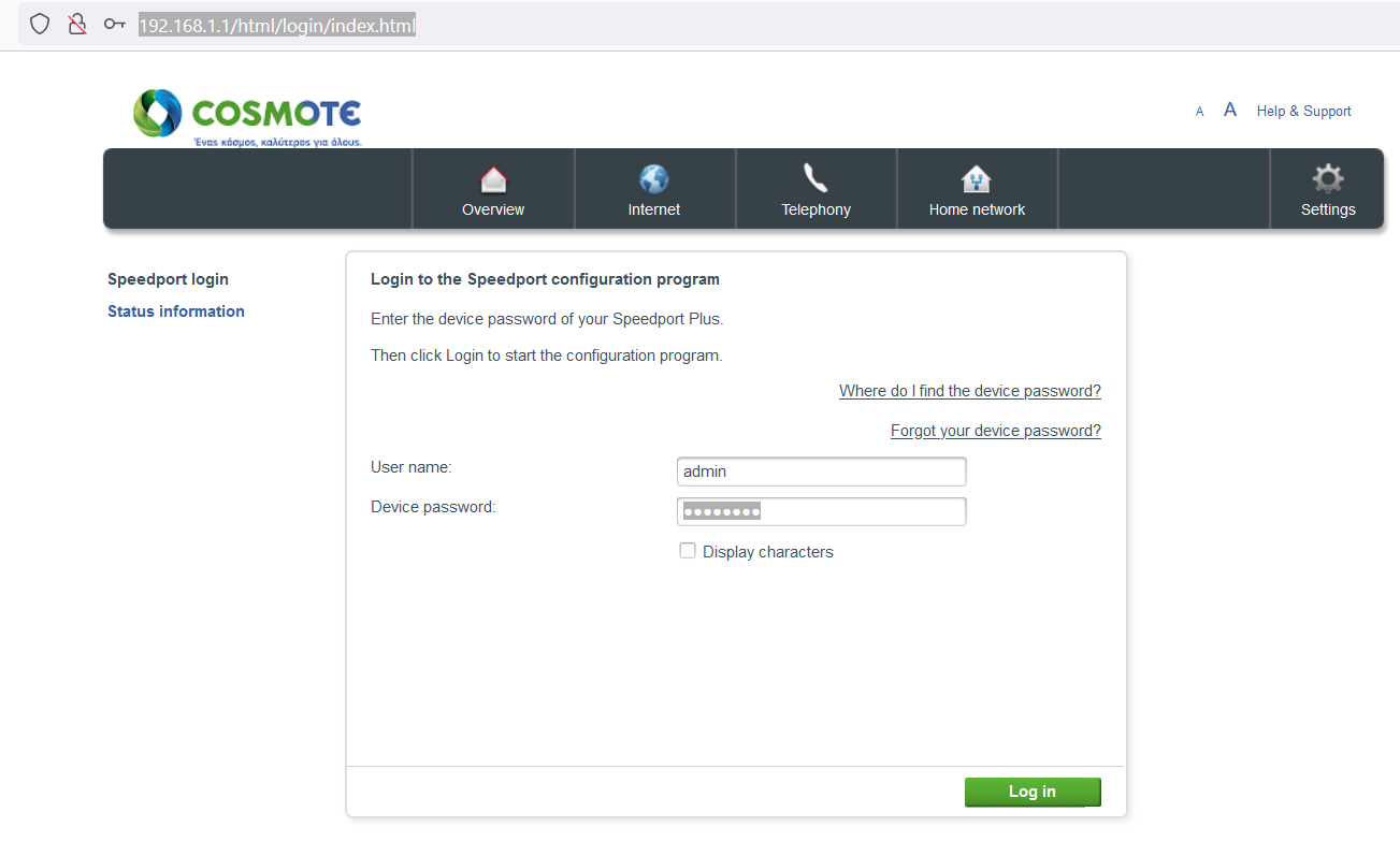 Μπαίνετε στο link http://192.168.1.1/html/login/index.html και βάζετε τα στοιχεία εισόδου του router. Τα στοιχεία βρίσκονται κάτω από το Router.