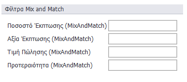 • Ποσοστό Έκπτωσης (MixAndMatch): Ορισμός ποσοστιαίας έκπτωσης που αφορά την προωθητική
