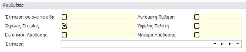 • Ποσοστό Έκπτωσης: Ορισμός ποσοστιαίας έκπτωσης που αφορά μόνο τη γραμμή προωθητικής