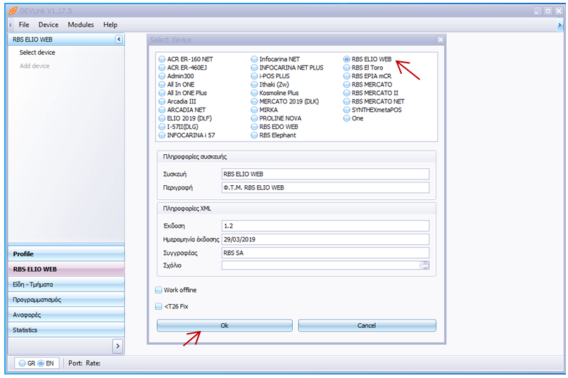 Για παράδειγμα, έστω ότι έχετε ταμειακή RBS ELIO WEB. Επιλέγετε την ταμειακή και πατάτε Ok.